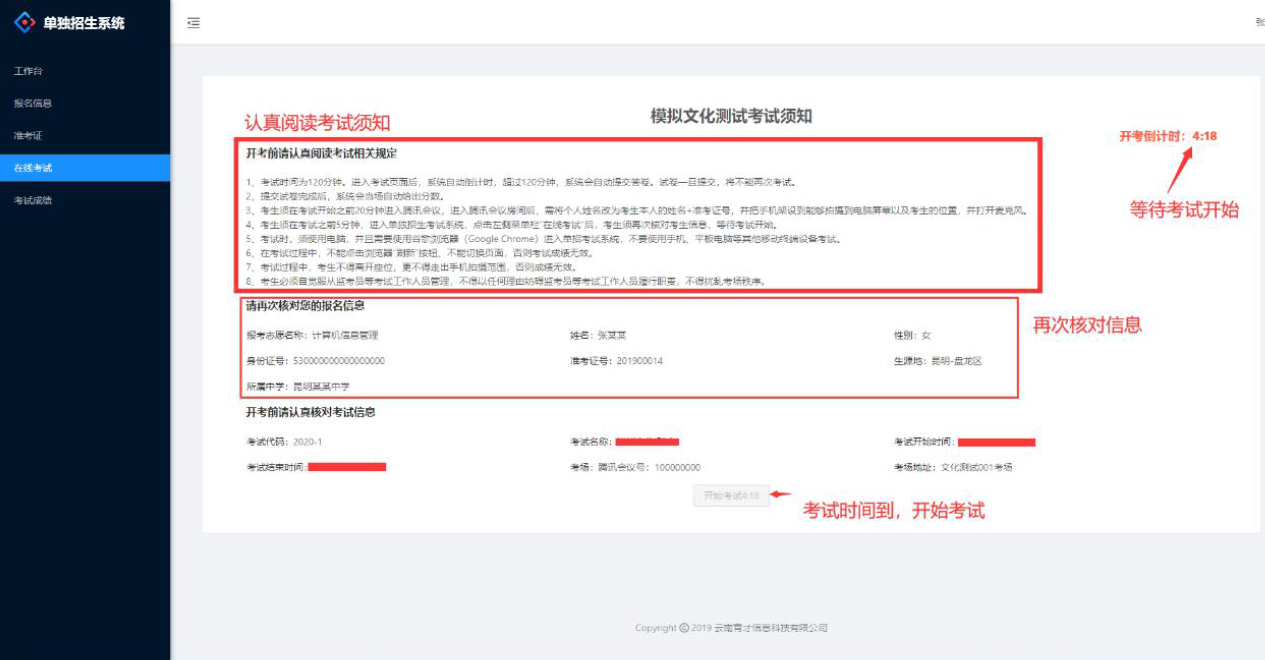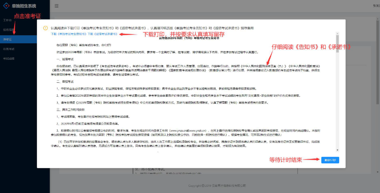 (3) 打印模擬準(zhǔn)考證之前,考生須仔細(xì)閱讀《誠(chéng)信考試承諾書》、《單獨(dú)考試考生告知書》。