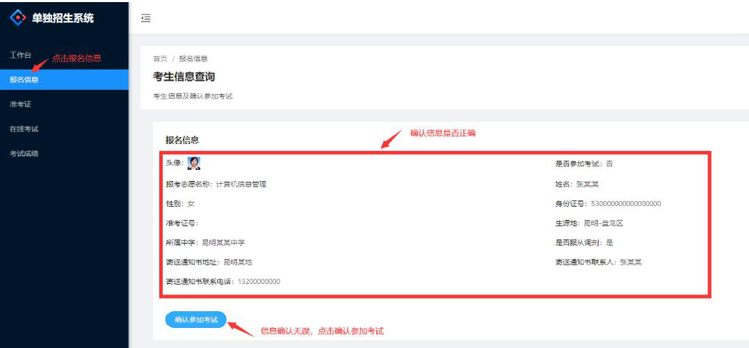 不點(diǎn)擊“確認(rèn)參加考試”的考生,不能參加我校的單獨(dú)招生考試。