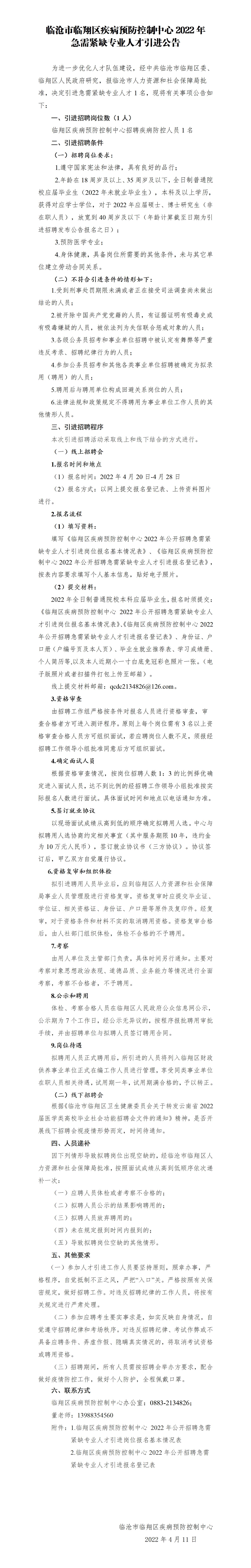 臨滄市臨翔區(qū)疾病預(yù)防控制中心2022年急需緊缺專(zhuān)業(yè)人才引進(jìn)公告