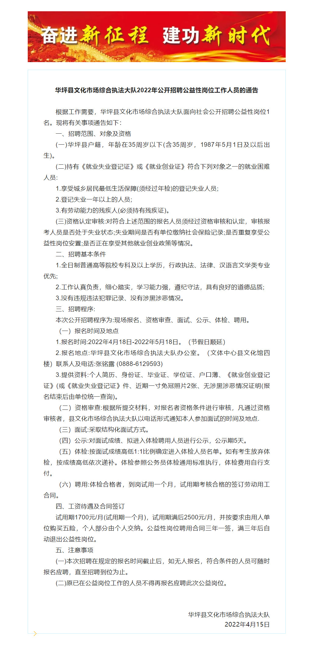 華坪縣文化市場(chǎng)綜合執(zhí)法大隊(duì)2022年公開(kāi)招聘公益性崗位工作人員的通告