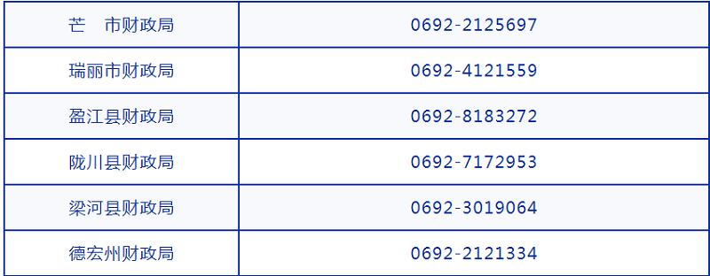 請隨時(shí)關(guān)注德宏州財(cái)政局門戶網(wǎng)站和德宏財(cái)政微信公眾號公布的相關(guān)信息。如有疑問,請咨詢德宏州各縣市財(cái)政會計(jì)管理部門。