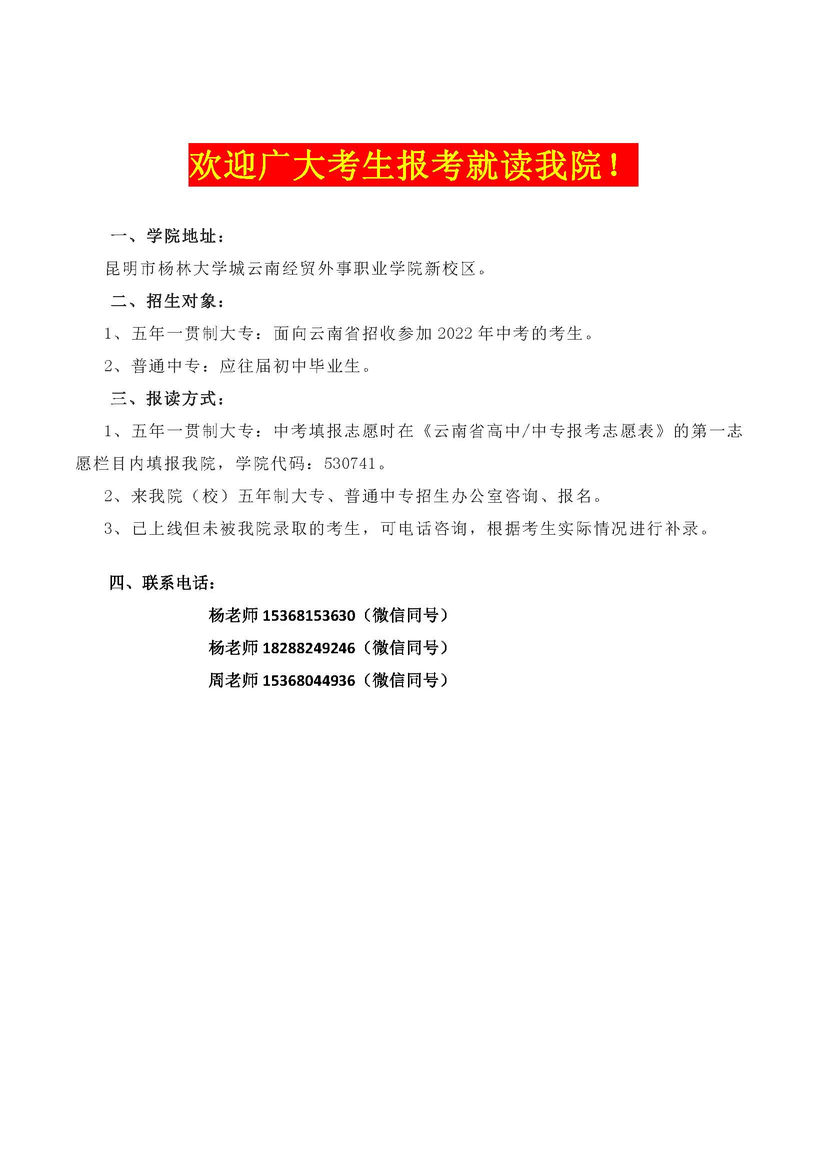 云南經(jīng)貿(mào)外事職業(yè)學院五年制大專招生簡章