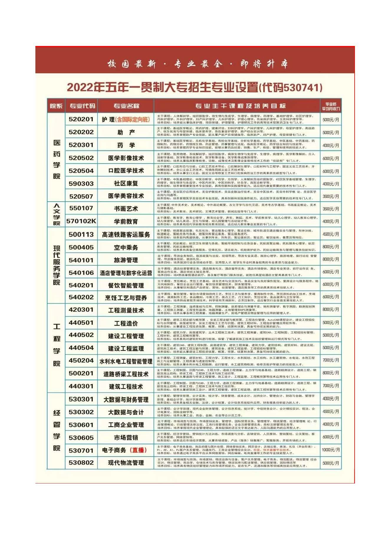 2022年云南經(jīng)貿(mào)外事職業(yè)學院五年制大專招生簡章