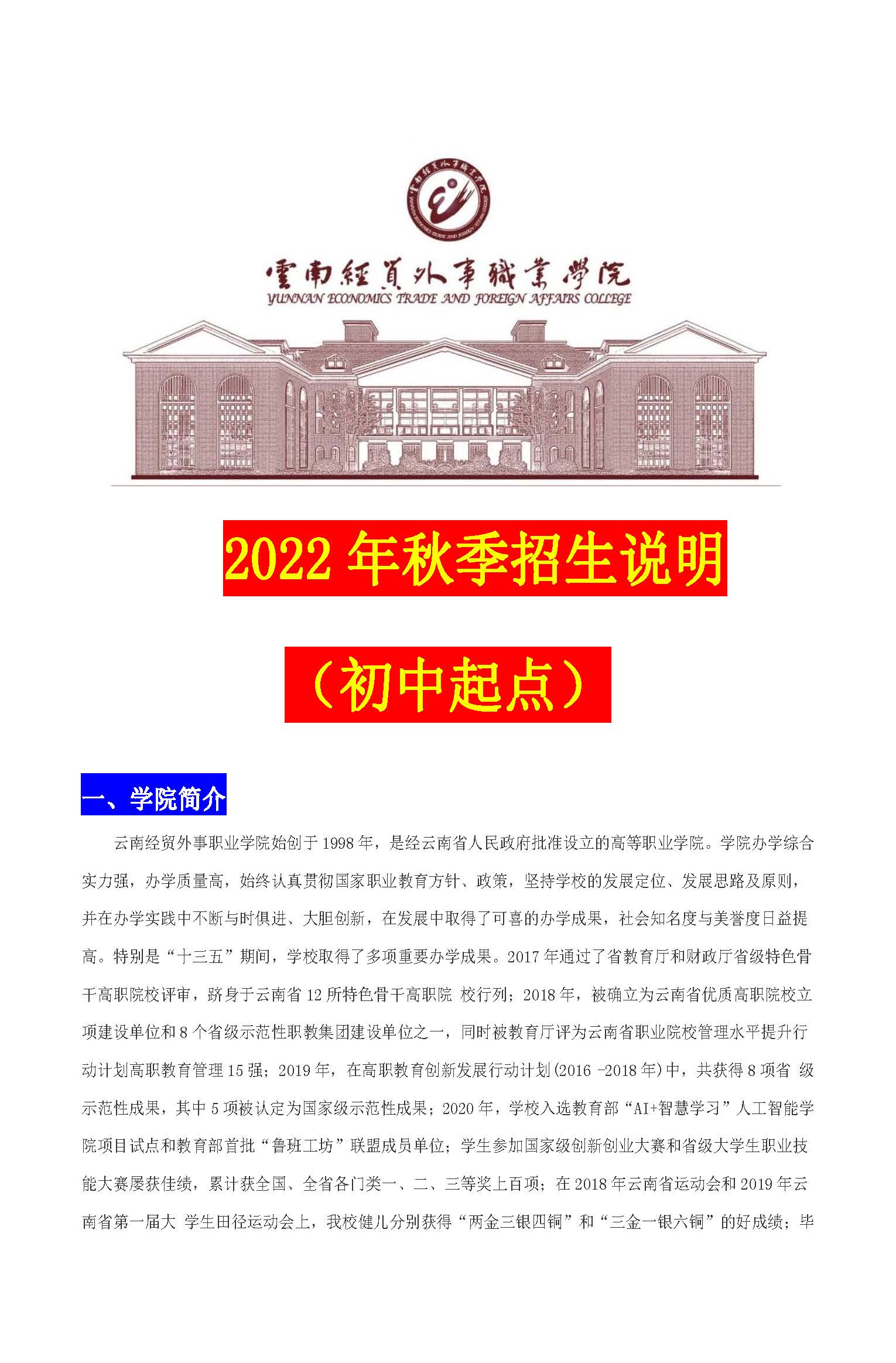 2022年云南經(jīng)貿(mào)外事職業(yè)學院招生章程
