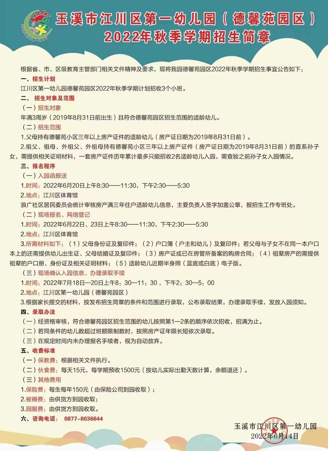 2022年玉溪市江川區(qū)第一幼兒園(德馨苑園區(qū))秋季學(xué)期招生簡(jiǎn)章