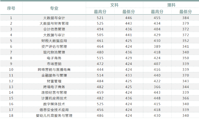 云南財(cái)經(jīng)職業(yè)學(xué)院2021年高職專科(普高)錄取分?jǐn)?shù)