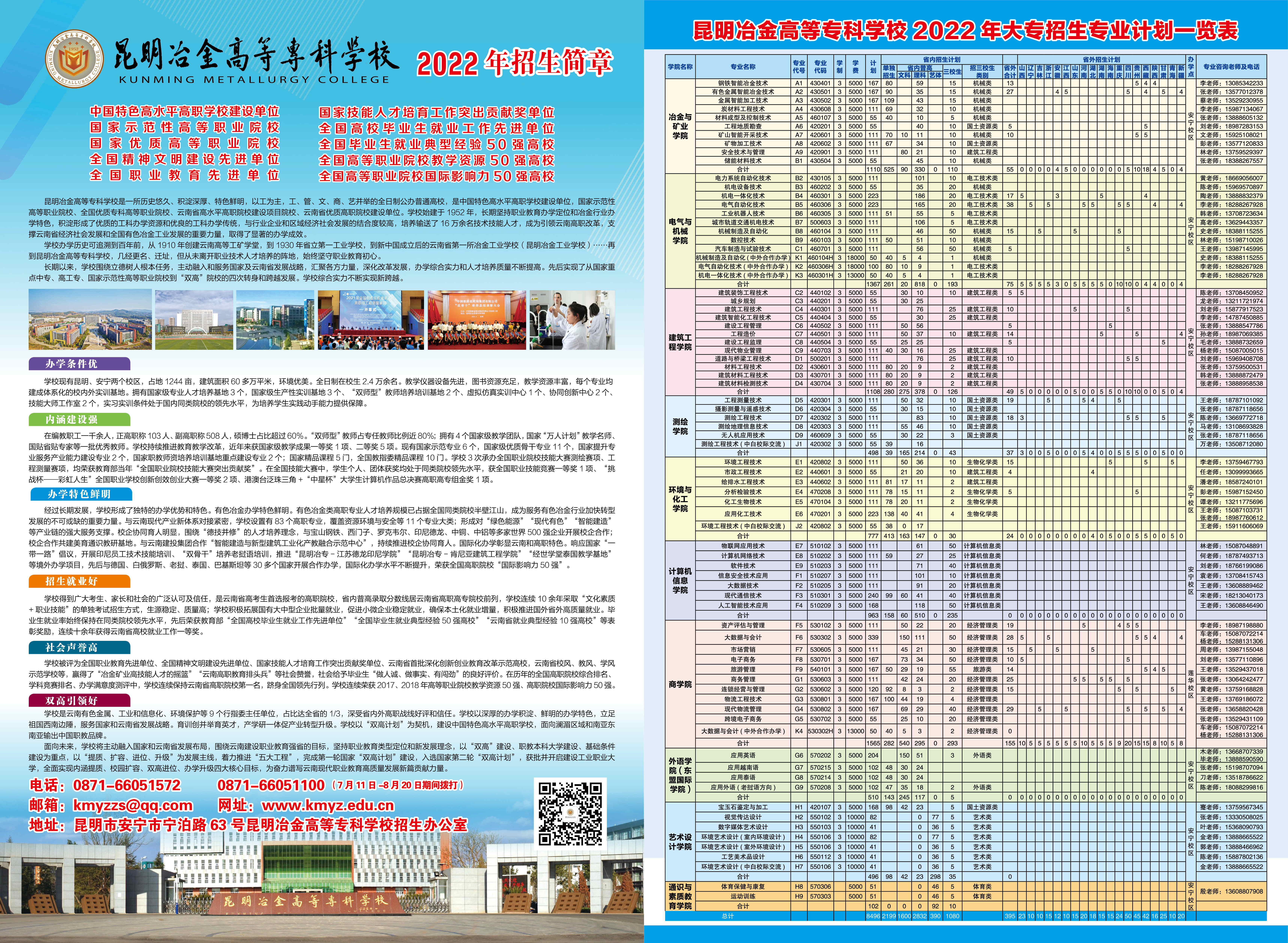 2022年昆明冶金高等??茖W(xué)校大專招生簡(jiǎn)章