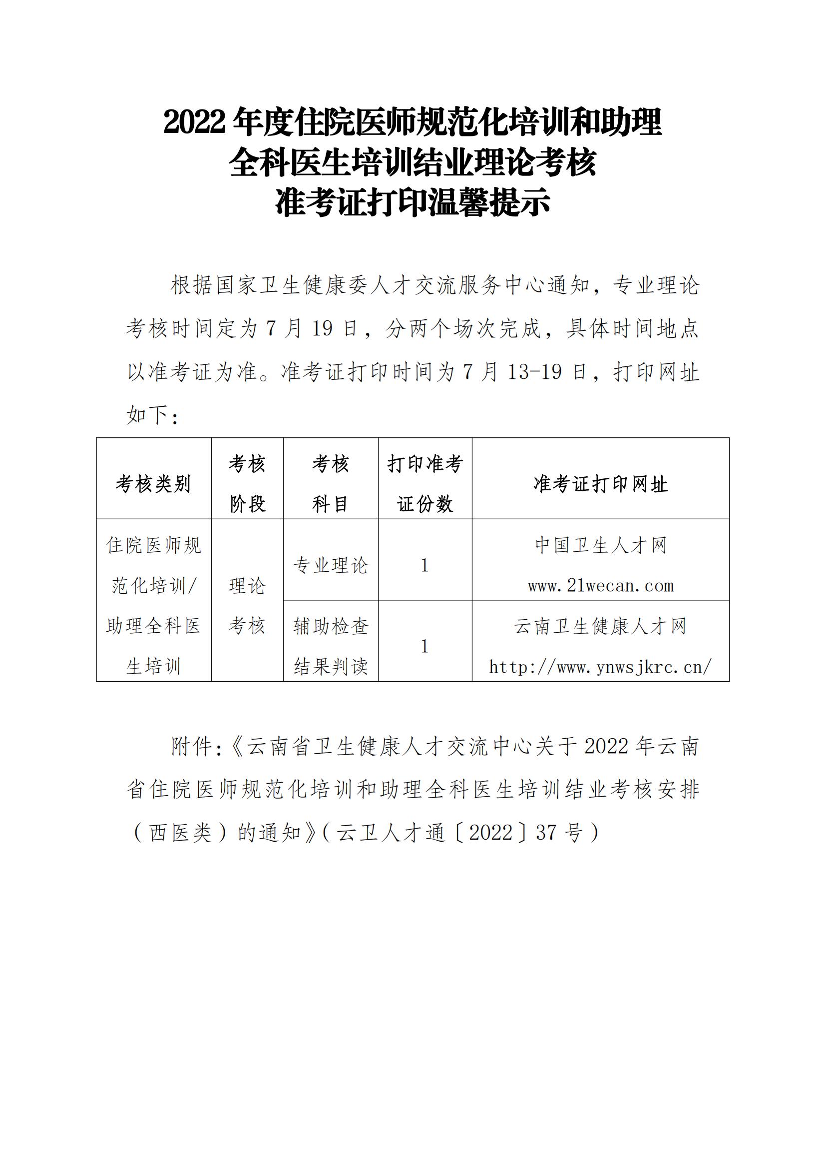 2022年住院醫(yī)師規(guī)范化培訓和助理全科醫(yī)生培訓結(jié)業(yè)理論考核準考證打印溫馨提示