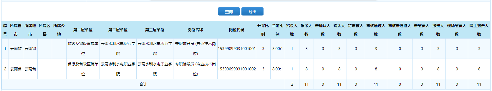 云南水利水電職業(yè)學(xué)院2022年第二次事業(yè)單位公開招聘工作人員報名情況公告