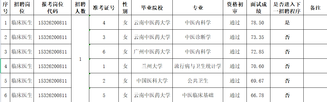根據(jù)《2023年文山州事業(yè)單位緊缺崗位招聘通告》《2023年文山州州直衛(wèi)生健康單位緊缺崗位招聘通告》,2023年3月3日文山州婦幼保健院組織開(kāi)展了面試,現(xiàn)將面試成績(jī)公布如下。