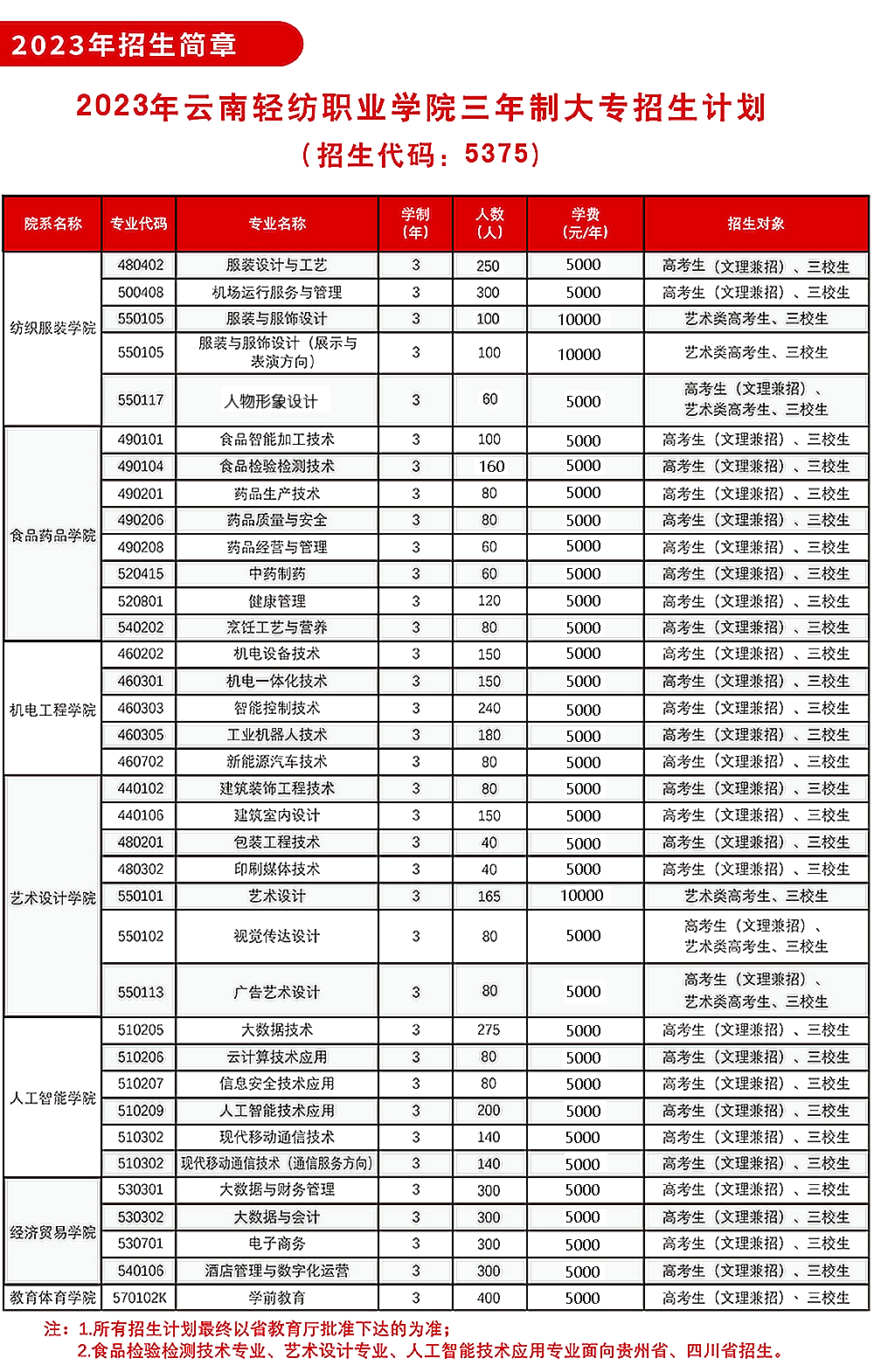 云南輕紡職業(yè)學(xué)院2023年招生簡(jiǎn)章