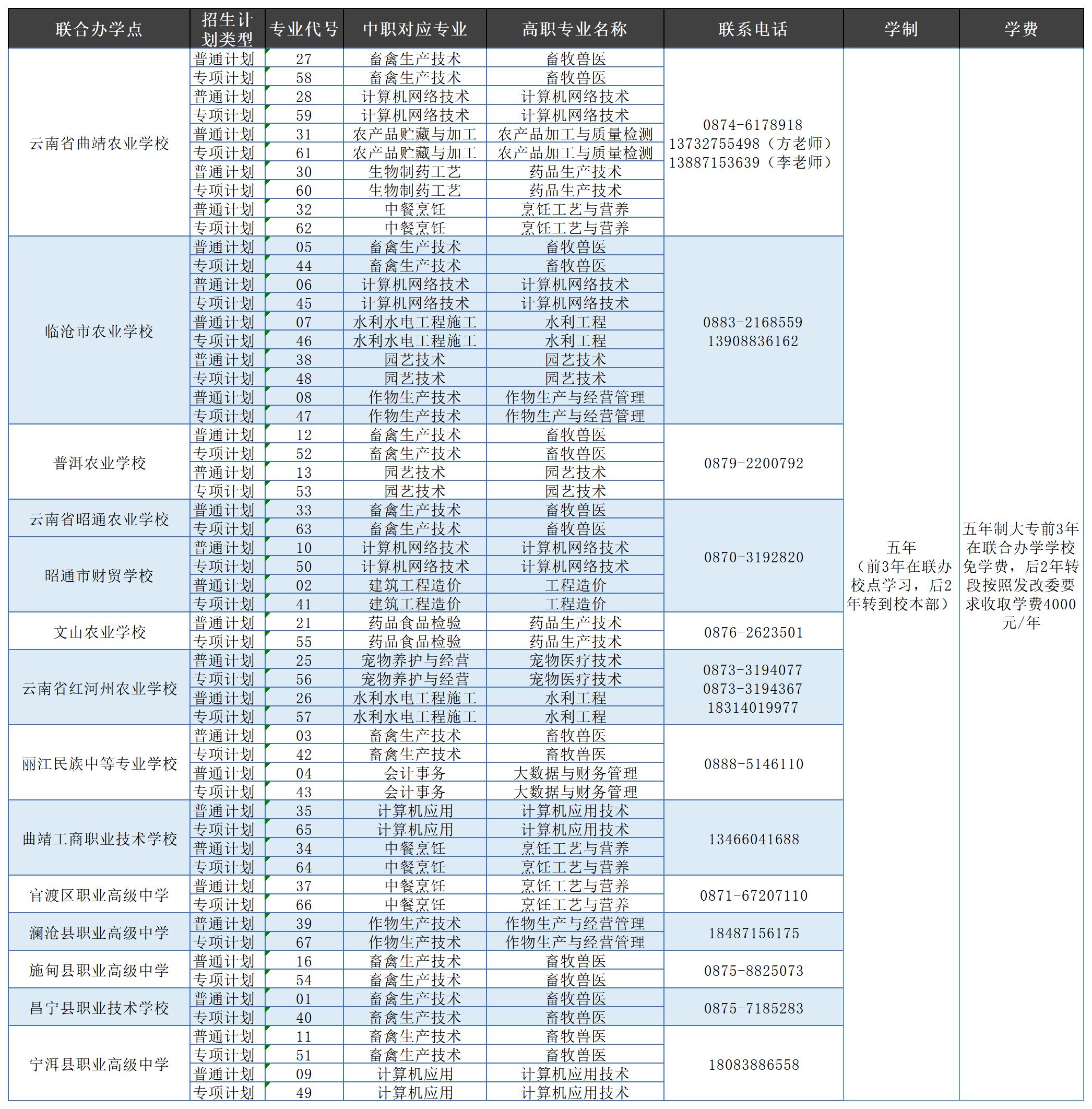 云南農(nóng)業(yè)職業(yè)技術(shù)學(xué)院2023年五年制大專招生專業(yè)信息