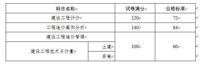 2014年度造價工程師資格考試合格標準