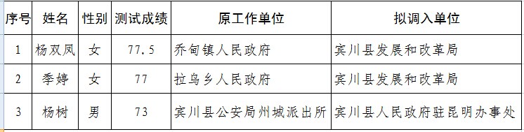 根據(jù)《賓川縣縣直機(jī)關(guān)公開選調(diào)公務(wù)員暫行辦法》和《關(guān)于認(rèn)真做好2014—2015年縣直機(jī)關(guān)公開選調(diào)公務(wù)員的通知》規(guī)定,經(jīng)基礎(chǔ)知識(shí)測(cè)試、用人單位考察和縣政府審批,現(xiàn)將第二批擬調(diào)動(dòng)人員情況公示如下: