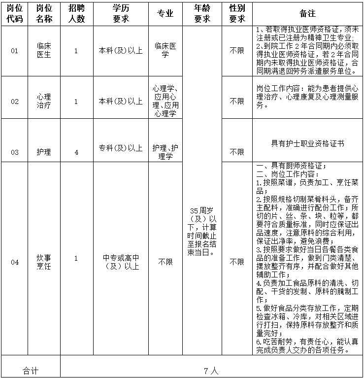 根據(jù)昆明市精神病院工作開展需要,現(xiàn)面向社會(huì)公開招聘7名勞務(wù)派遣人員,本次招聘將委托第三方招聘服務(wù)機(jī)構(gòu)全程負(fù)責(zé),招聘遵循“公開、公平、競(jìng)爭(zhēng)、擇優(yōu)”的原則,工作人員嚴(yán)格按照公開發(fā)布招聘公告、報(bào)名、資格審核、筆試、面試、綜合考察、體檢、公示、錄用的程序進(jìn)行,現(xiàn)將有關(guān)招聘事宜公告如下: