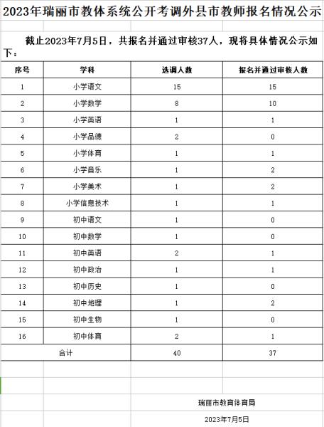 2023年瑞麗市教體系統(tǒng)公開考調外縣市教師報名情況公示