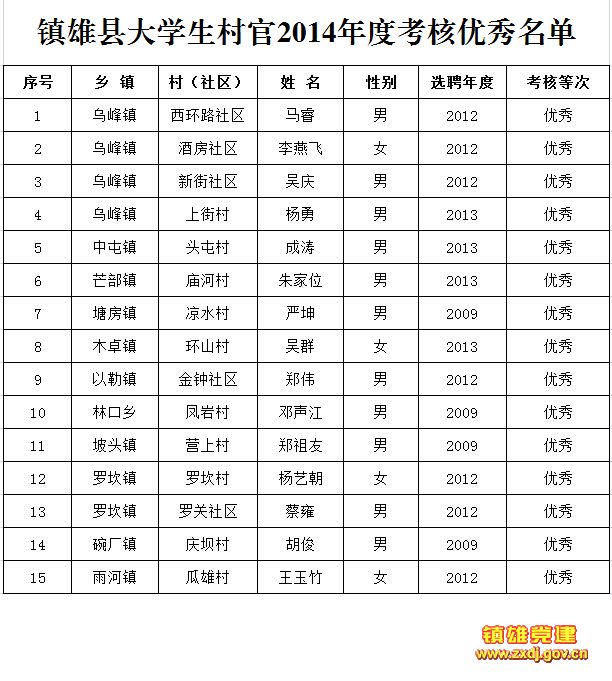 附:鎮(zhèn)雄縣大學生村官2014年度考核優(yōu)秀名單
