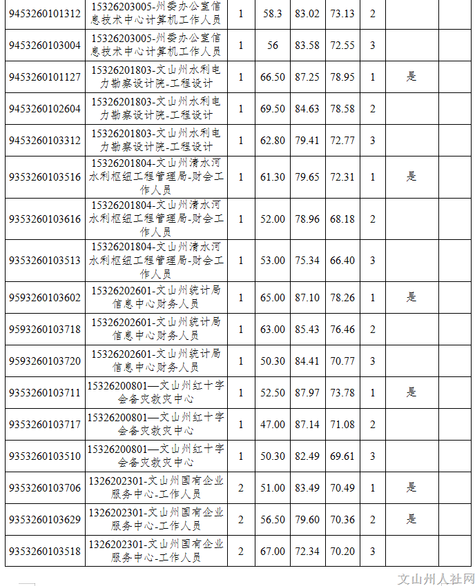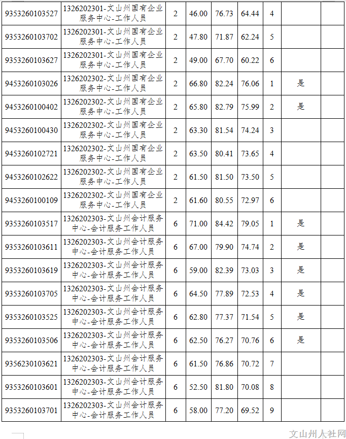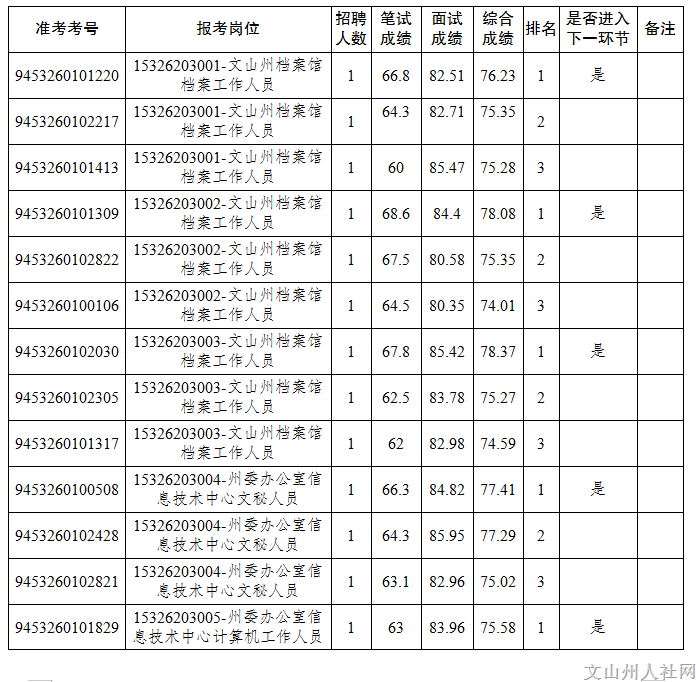 附件:《2023年文山州州屬事業(yè)單位公開選調(diào)工作人員面試成績和進入下一環(huán)節(jié)人員名單(第五批)》
