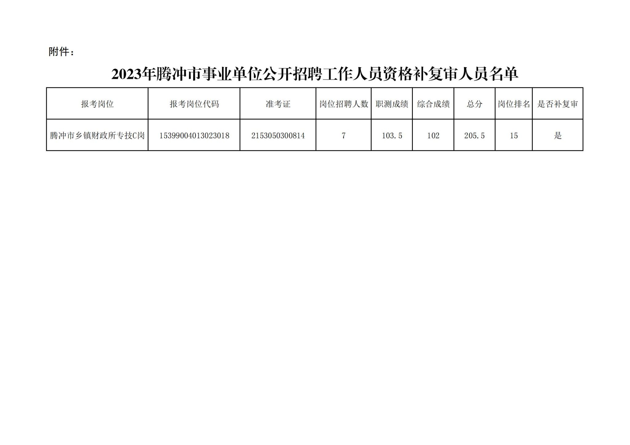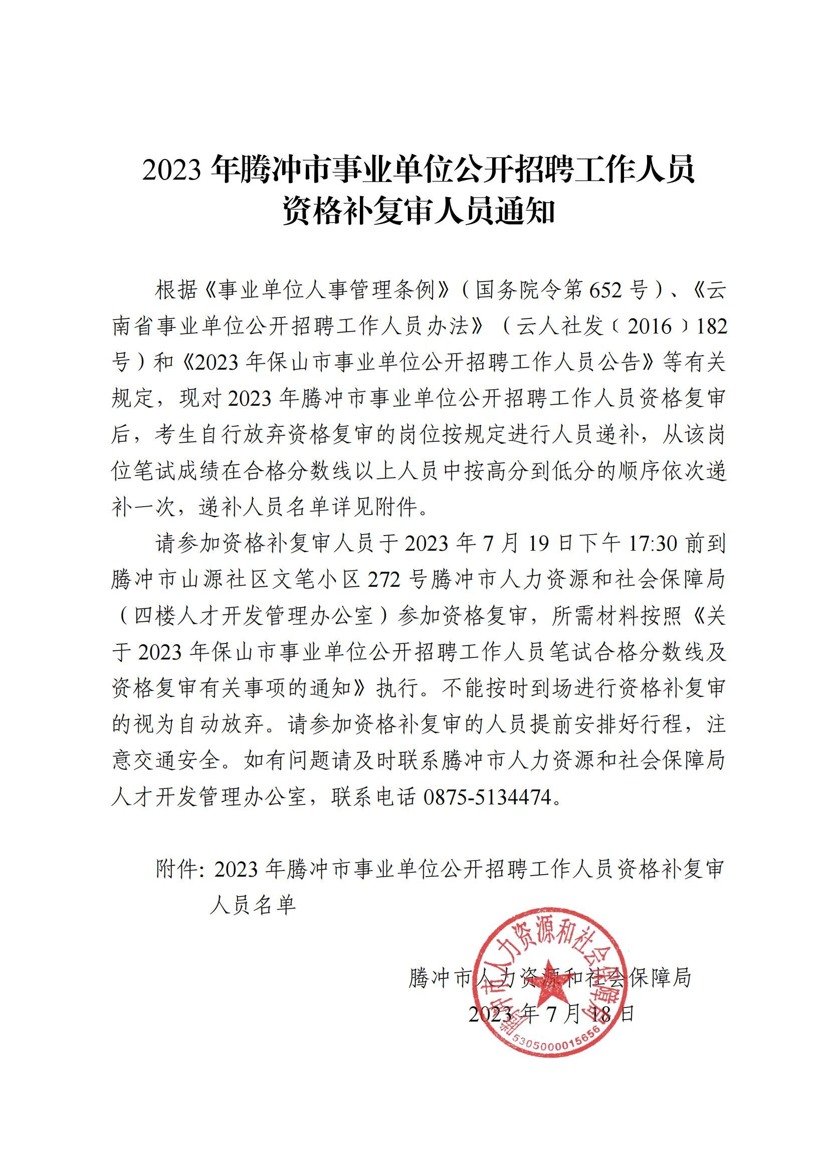 2023年騰沖市事業(yè)單位招聘工作人員資格補復審人員通知