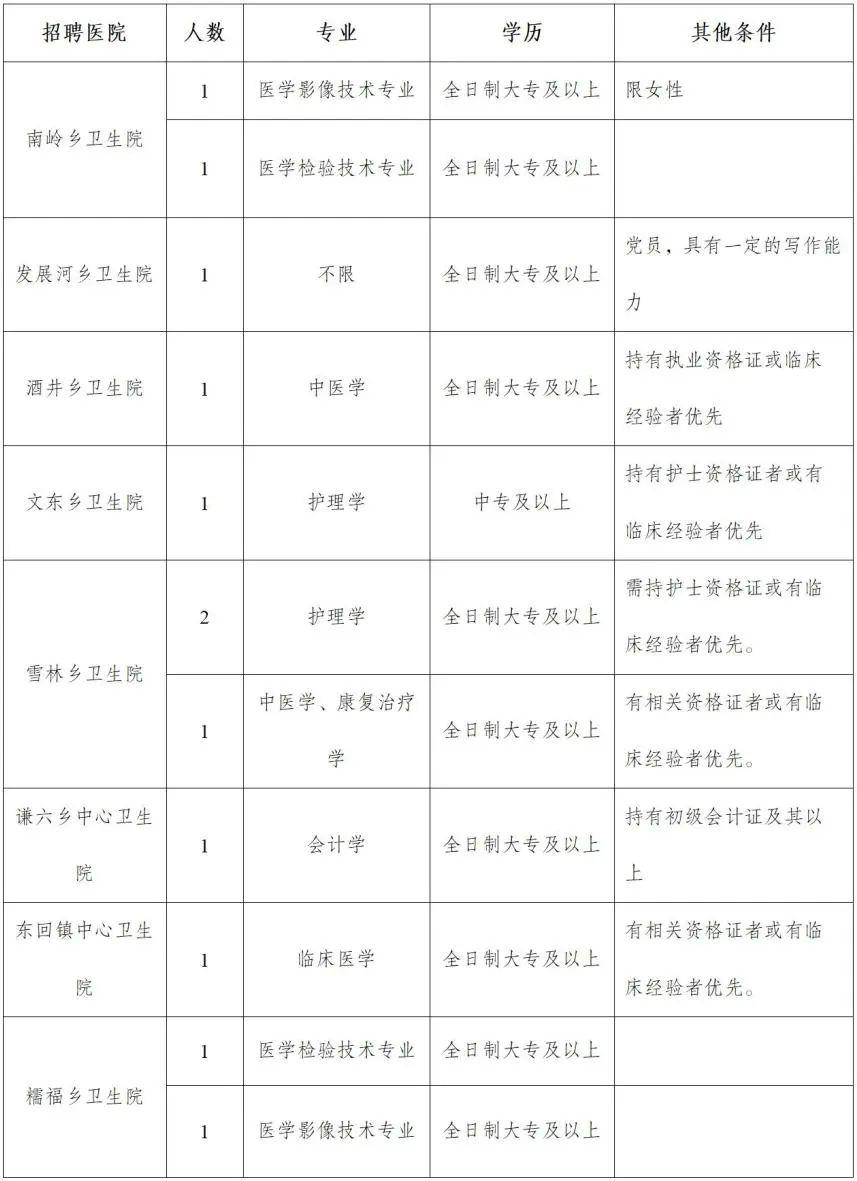 (五)公示:根據(jù)體檢結(jié)果,確定擬聘用人員,擬聘用人員名單在各鄉(xiāng)鎮(zhèn)衛(wèi)生院公示欄進(jìn)行公示,公示期為5個工作日。
