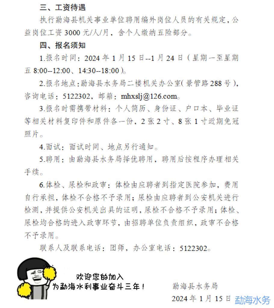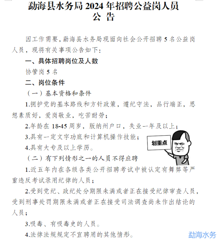 勐海縣水務(wù)局2024年招聘公益崗人員公告