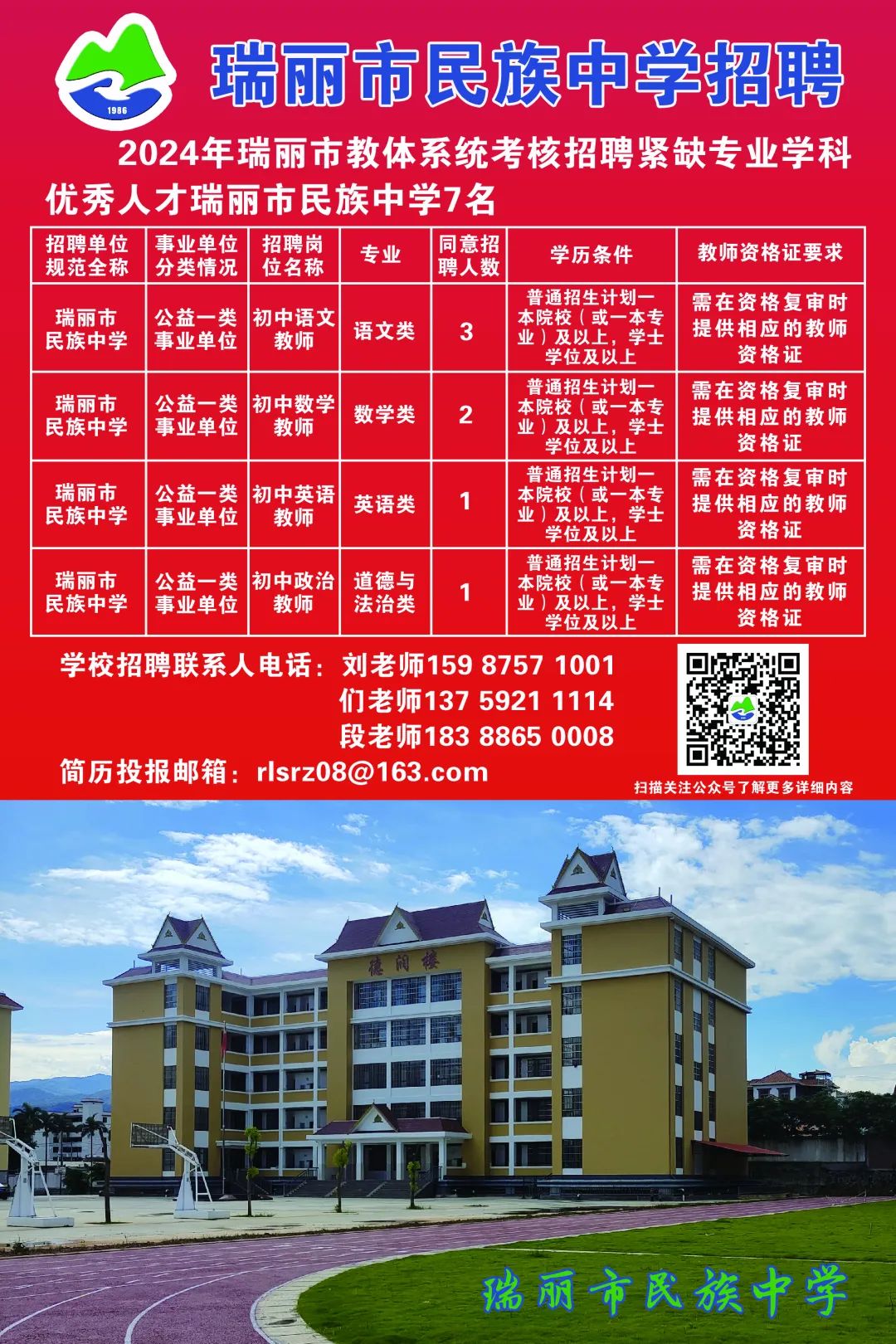 瑞麗市民族中學招聘