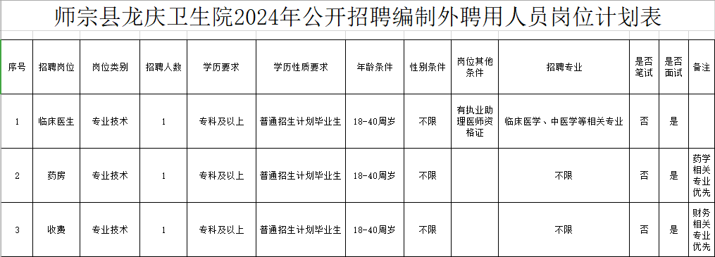 師宗縣龍慶衛(wèi)生院公開(kāi)招聘編制外聘用人員公告
