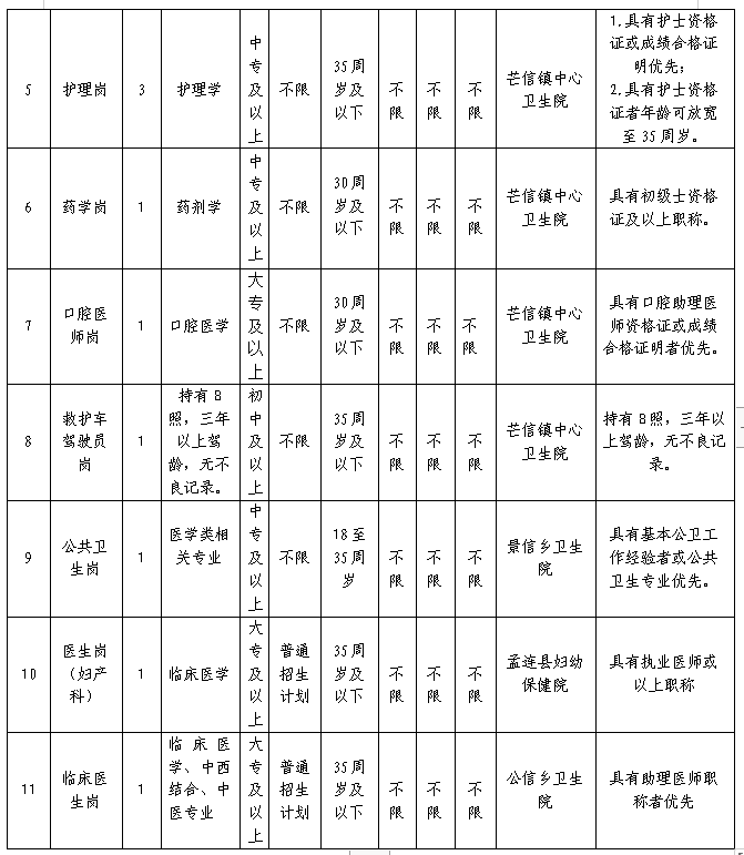1.公共衛(wèi)生崗:1人。