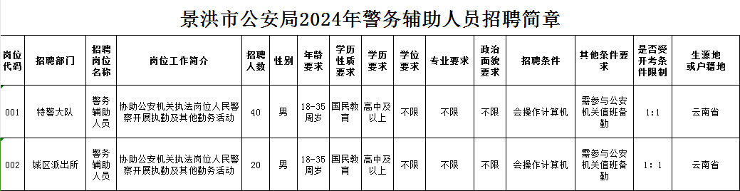 附件:1.《景洪市公安局2024年警務(wù)輔助人員招聘簡章》