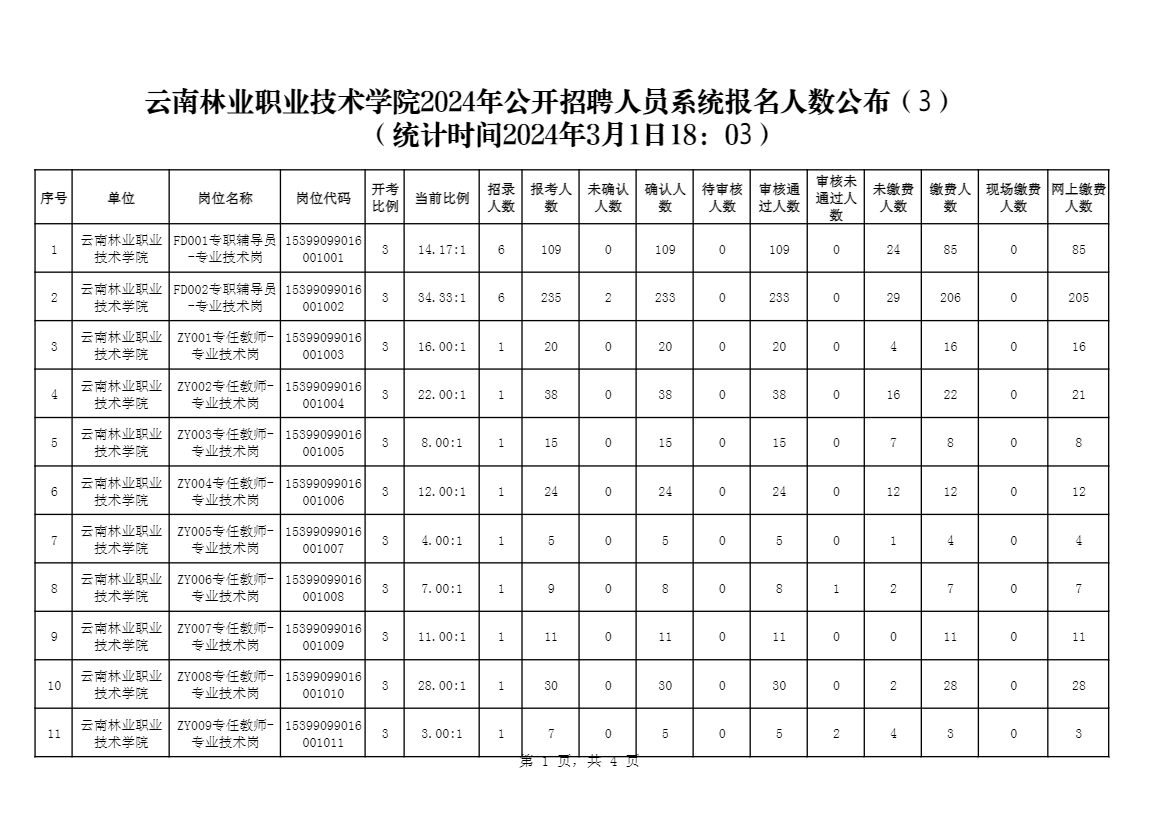 2024年云南林業(yè)職業(yè)技術學院招聘報名數(shù)據(jù)(截止3月1日18點)