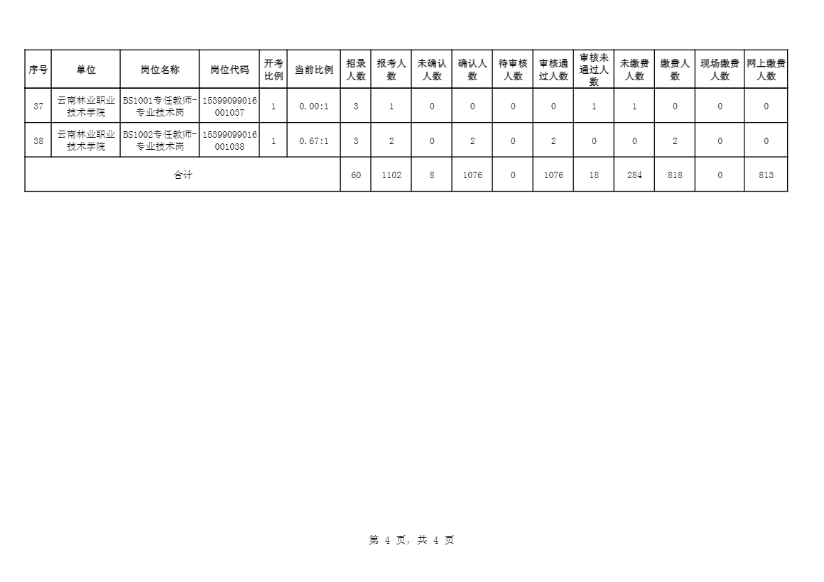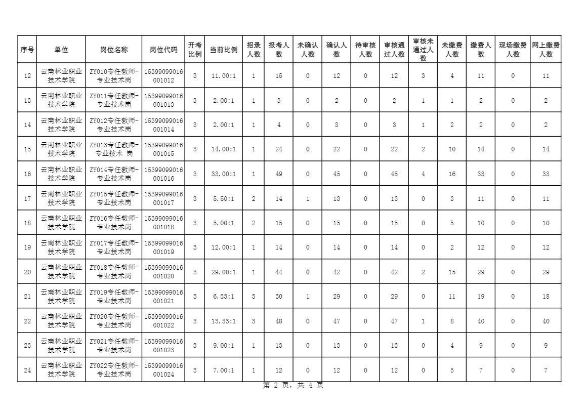 云南林業(yè)職業(yè)技術學院2024年公開招聘人員系統(tǒng)報名人數(shù)公布
