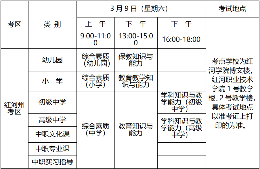 紅河州2024年上半年中小學(xué)教師資格全國(guó)統(tǒng)一考試筆試公告