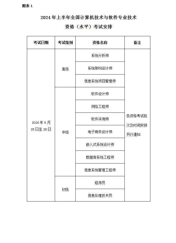 一、《2024年上半年全國(guó)計(jì)算機(jī)技術(shù)與軟件專業(yè)技術(shù)資格(水平)考試安排》