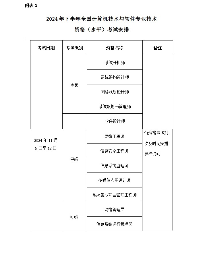 二、《2024年下半年全國(guó)計(jì)算機(jī)技術(shù)與軟件專業(yè)技術(shù)資格(水平)考試安排》