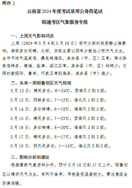 2.云南省2024年度考試錄用公務(wù)員筆試昭通考區(qū)氣象服務(wù)專報