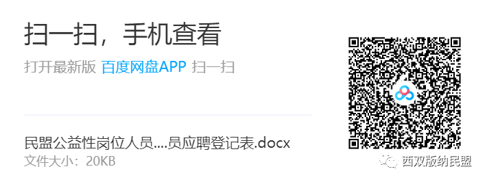 3.報名方式:將《民盟西雙版納州委會公益性崗位人員應(yīng)聘登記表》(見附件)發(fā)送至mmxsbn@163.com郵箱。