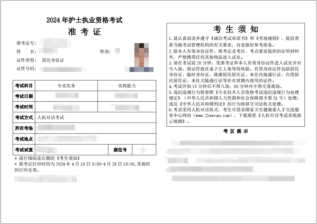 (護(hù)士執(zhí)業(yè)資格考試準(zhǔn)考證圖例)