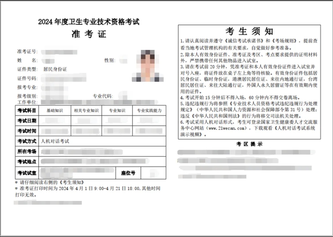 (衛(wèi)生專業(yè)技術(shù)資格考試準(zhǔn)考證圖例)