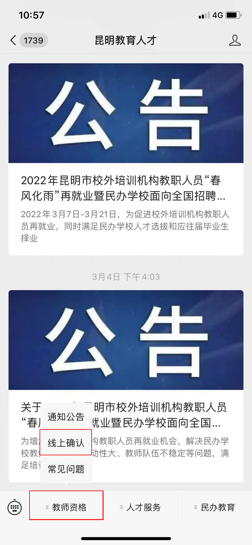 1.掃碼進(jìn)入并關(guān)注“昆明教育人才”微信公眾號。