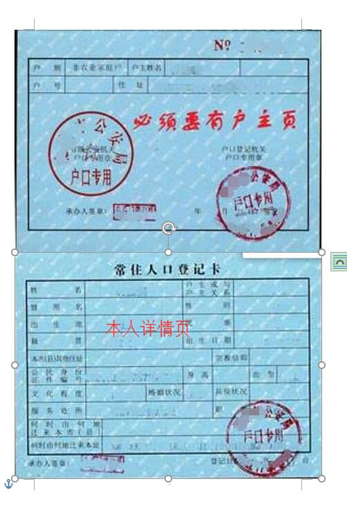 (1)戶口本首頁(上傳戶主頁)+本人頁照片示例(本人頁有派出所紅色公章就無需上傳戶主頁):