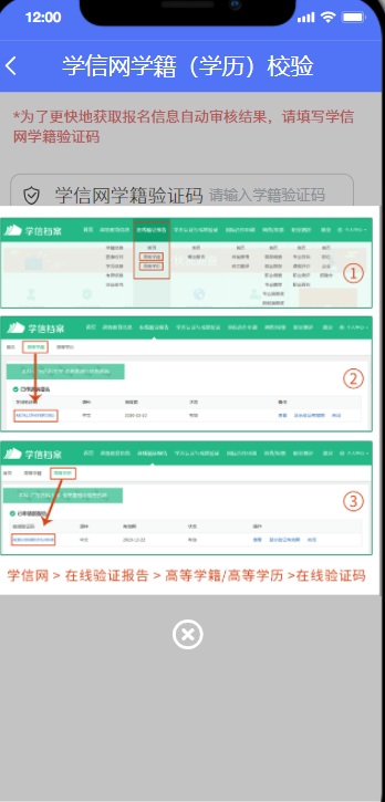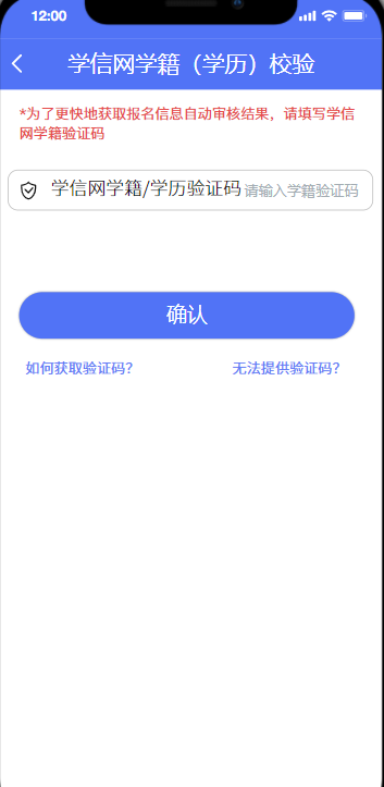 在校生可點擊“如何獲取驗證碼?”查看如何從學(xué)信網(wǎng)獲取學(xué)籍驗證碼的示例截圖,請務(wù)必輸入正確的學(xué)籍驗證碼。
