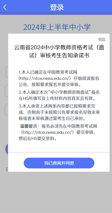進(jìn)入系統(tǒng)后,考生應(yīng)仔細(xì)閱讀“考生告知承諾書”,點擊“我已閱讀并簽字同意”后進(jìn)入系統(tǒng)“登錄”頁。