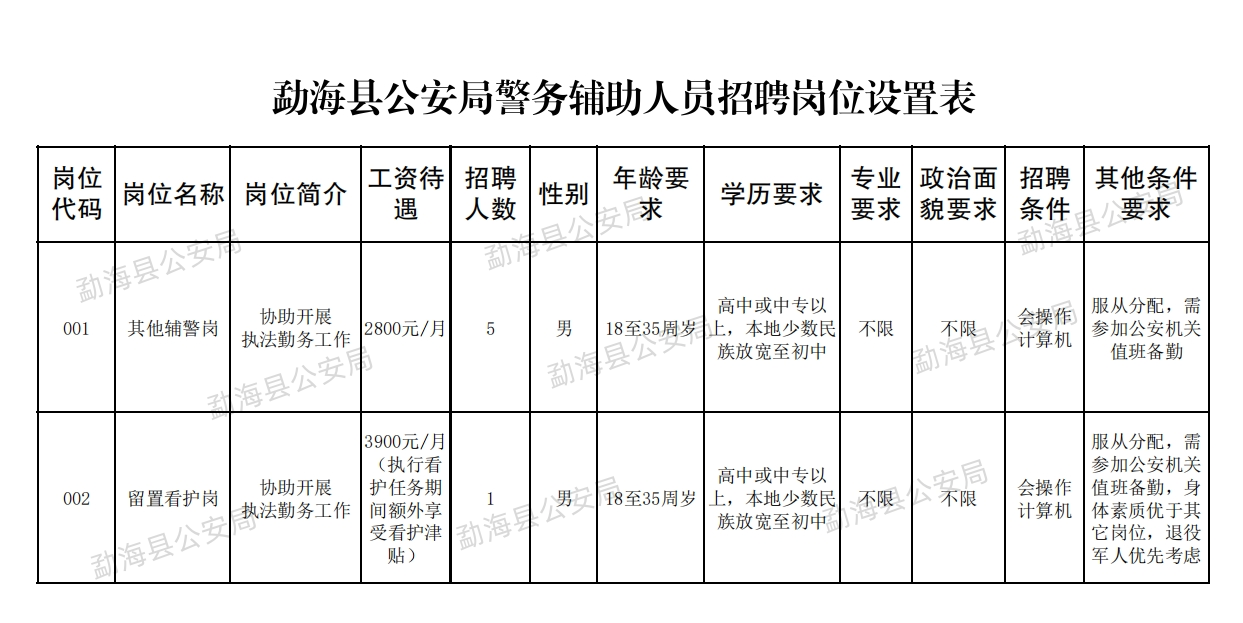 根據(jù)工作需要,勐海縣公安局現(xiàn)面向社會(huì)公開招聘一批警務(wù)輔助人員(以下簡稱“輔警”),有關(guān)事項(xiàng)公告如下: