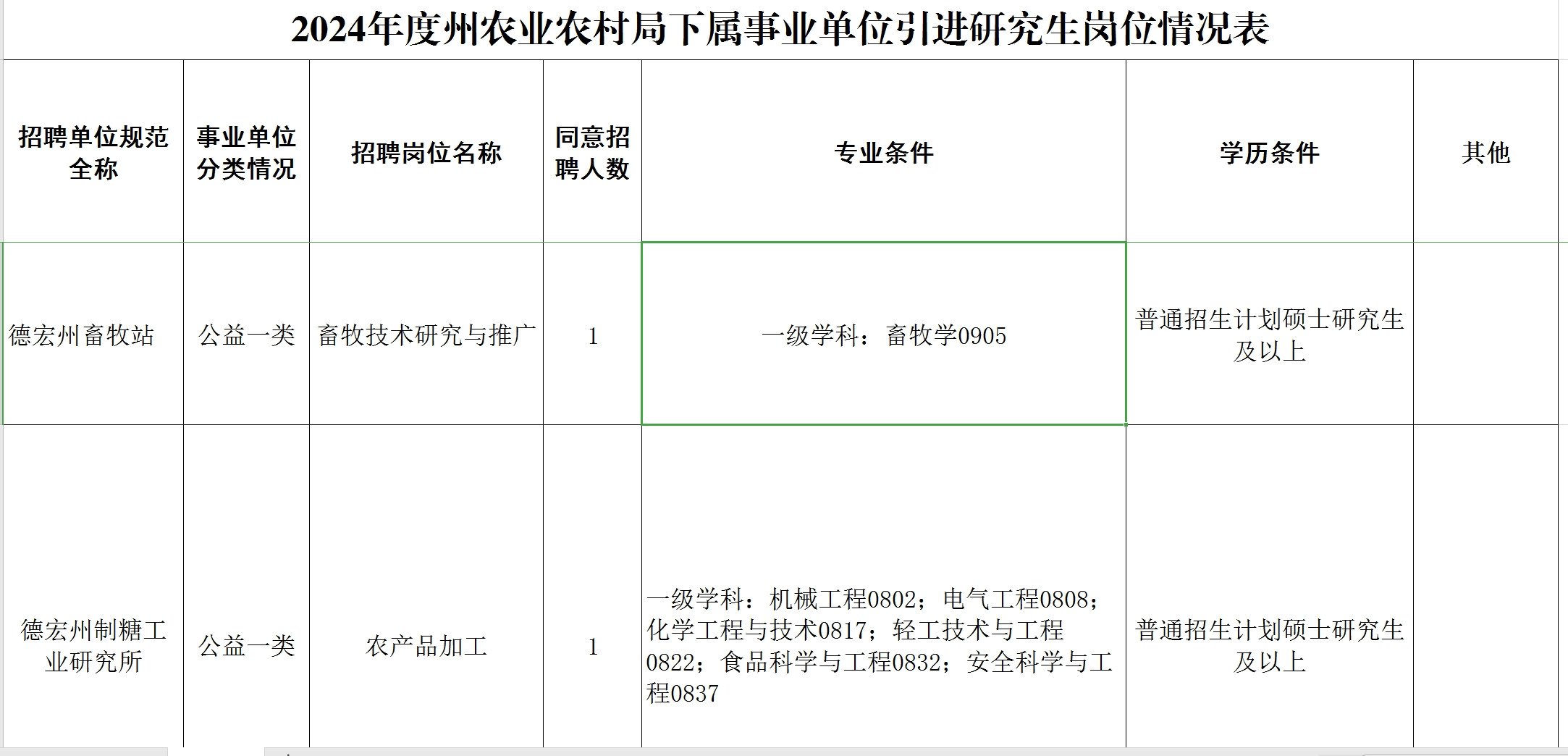云南省德宏州農(nóng)業(yè)農(nóng)村局下屬事業(yè)單位2024年度公開引進(jìn)研究生公告