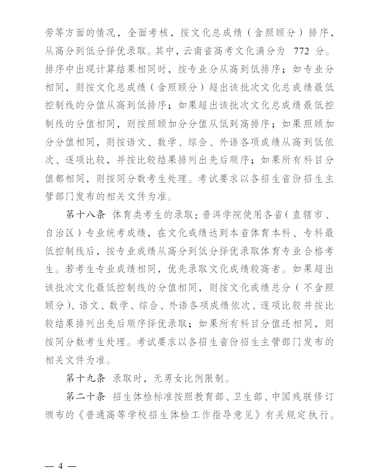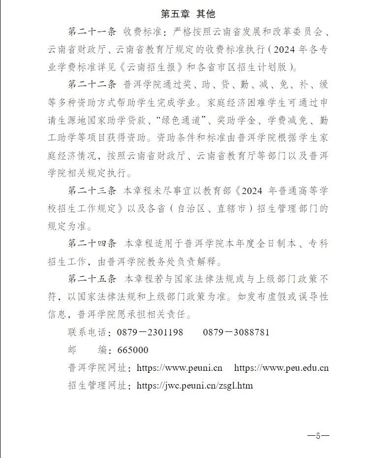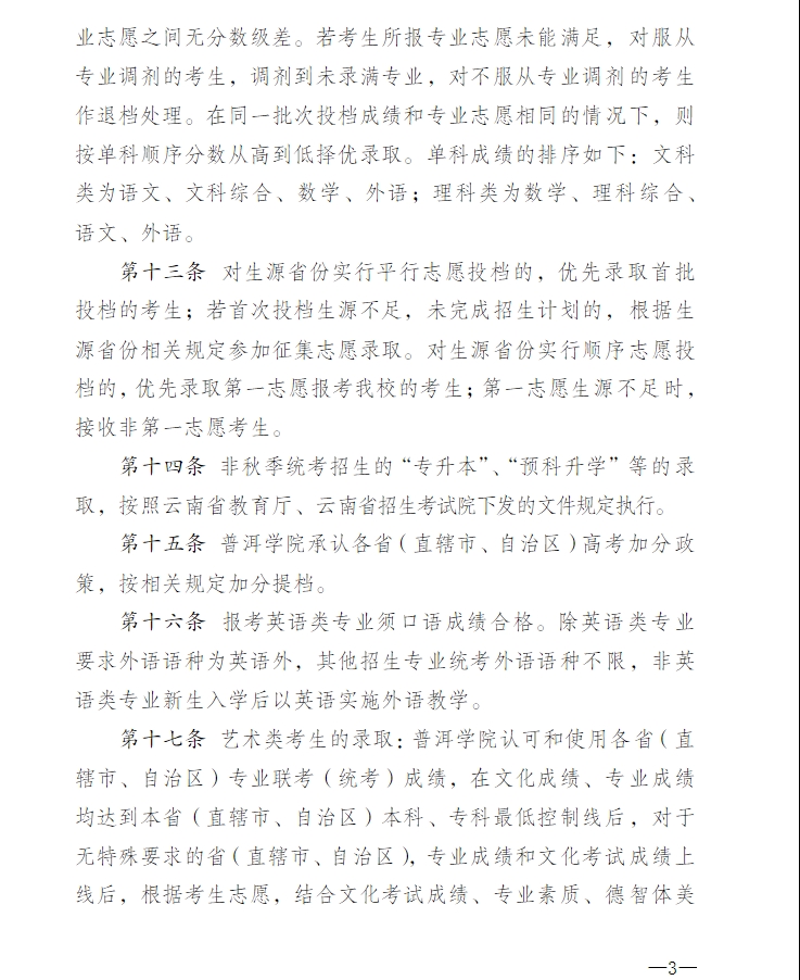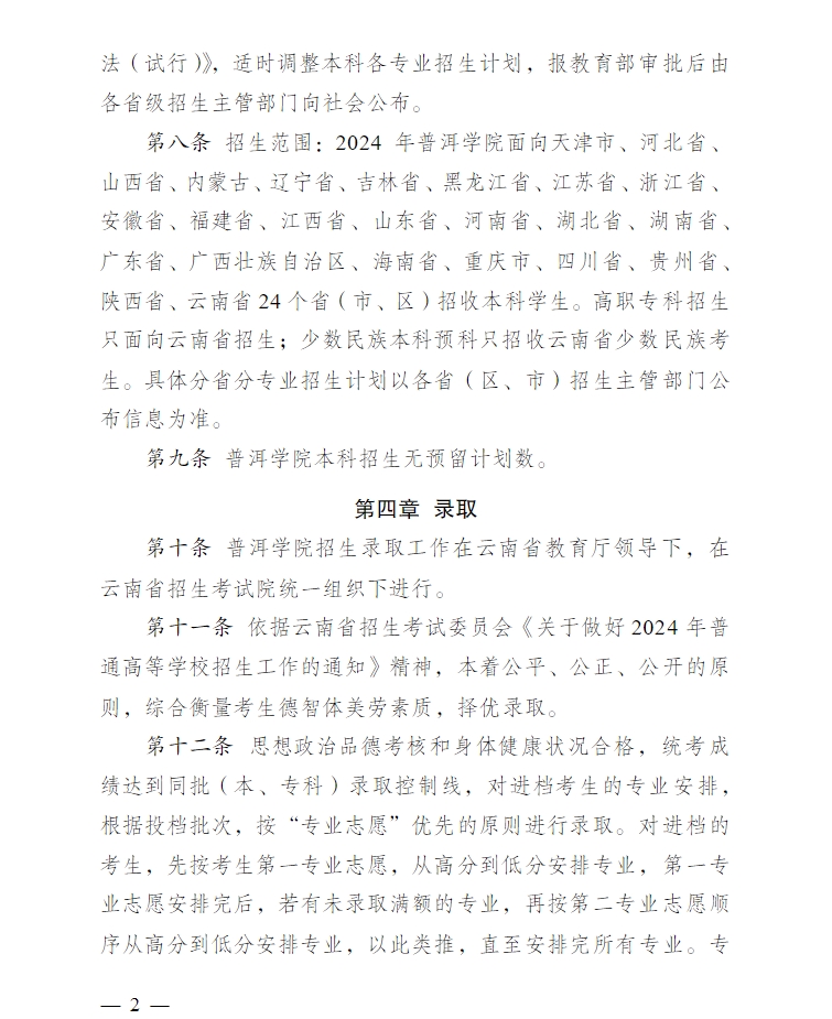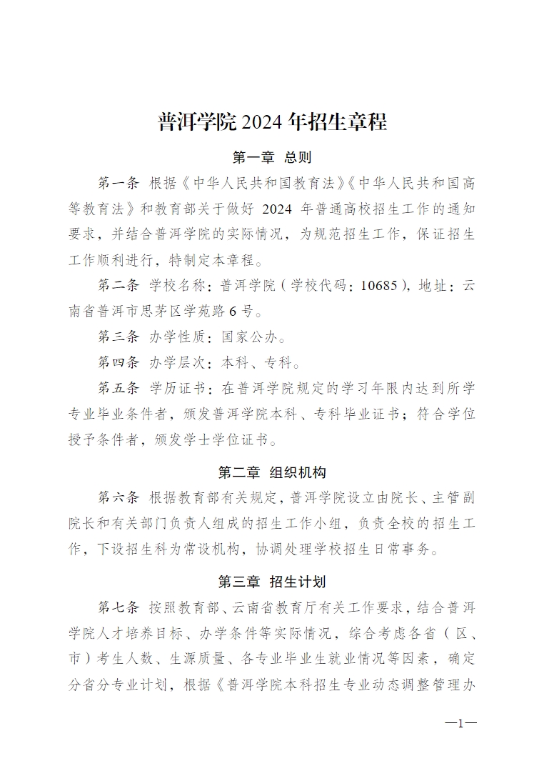 2024年普洱學(xué)院招生章程
