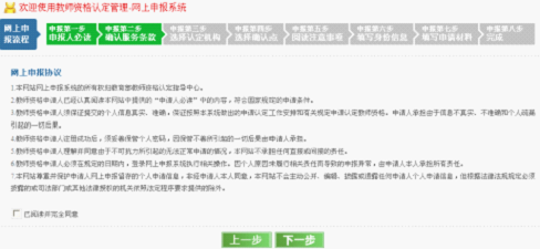 申請(qǐng)人選中“已閱讀并完全同意”網(wǎng)上申報(bào)協(xié)議才可點(diǎn)擊“下一步”按鈕進(jìn)入申報(bào)第三步,否則給出提示。