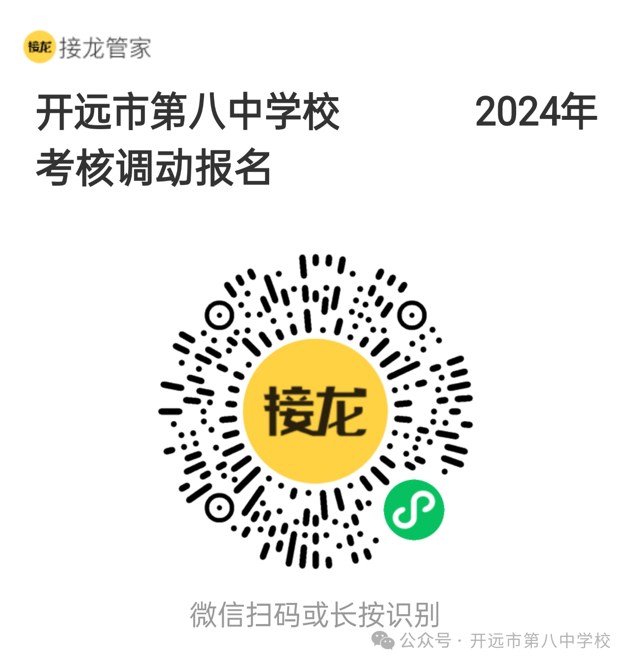 (1)《開遠(yuǎn)市第八中學(xué)校2024年考核調(diào)動(dòng)報(bào)名表》原件一式一份。
