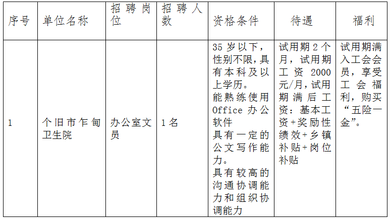 個(gè)舊市醫(yī)療衛(wèi)生共同體乍甸分院招聘編外工作人員公告