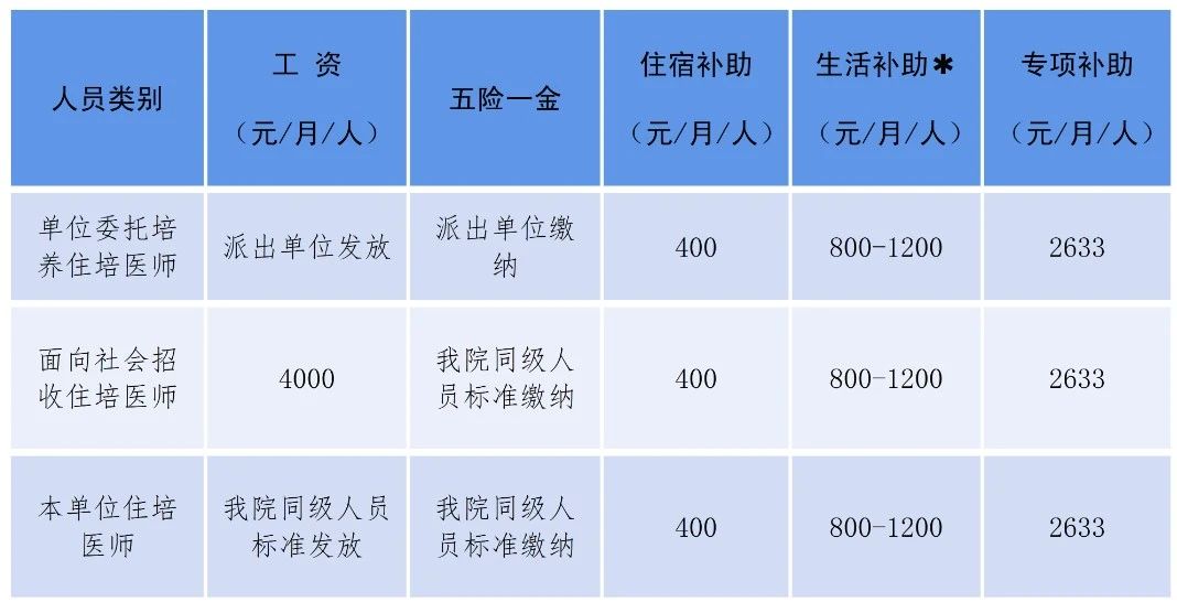 (生活補(bǔ)助?:住培醫(yī)師第一年未取得執(zhí)業(yè)醫(yī)師資格的,發(fā)放每人每月800元的生活補(bǔ)助;第二年未取得執(zhí)業(yè)醫(yī)師資格證的,發(fā)放每人每月400元的生活補(bǔ)助;第三年未取得執(zhí)業(yè)醫(yī)師資格證的,不再發(fā)放生活補(bǔ)助。住培醫(yī)師取得執(zhí)業(yè)醫(yī)師資格后,發(fā)放每人每月1200元生活補(bǔ)助。)