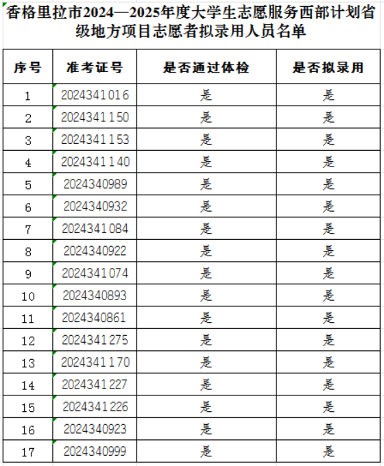 香格里拉市2024-2025年度大學(xué)生志愿服務(wù)西部計劃省級地方項目志愿者擬錄用人員公示